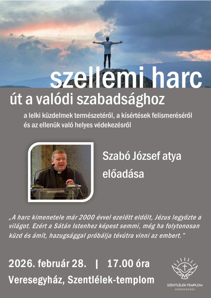 Szeretettel hívunk minden érdeklődőt Szabó József atya előadására. József atya Miskolc diósgyőri plébános, az Egri Főegyházmegye ördögűzője, az egri Érseki Papnevelő Intézet korábbi spirituálisa.